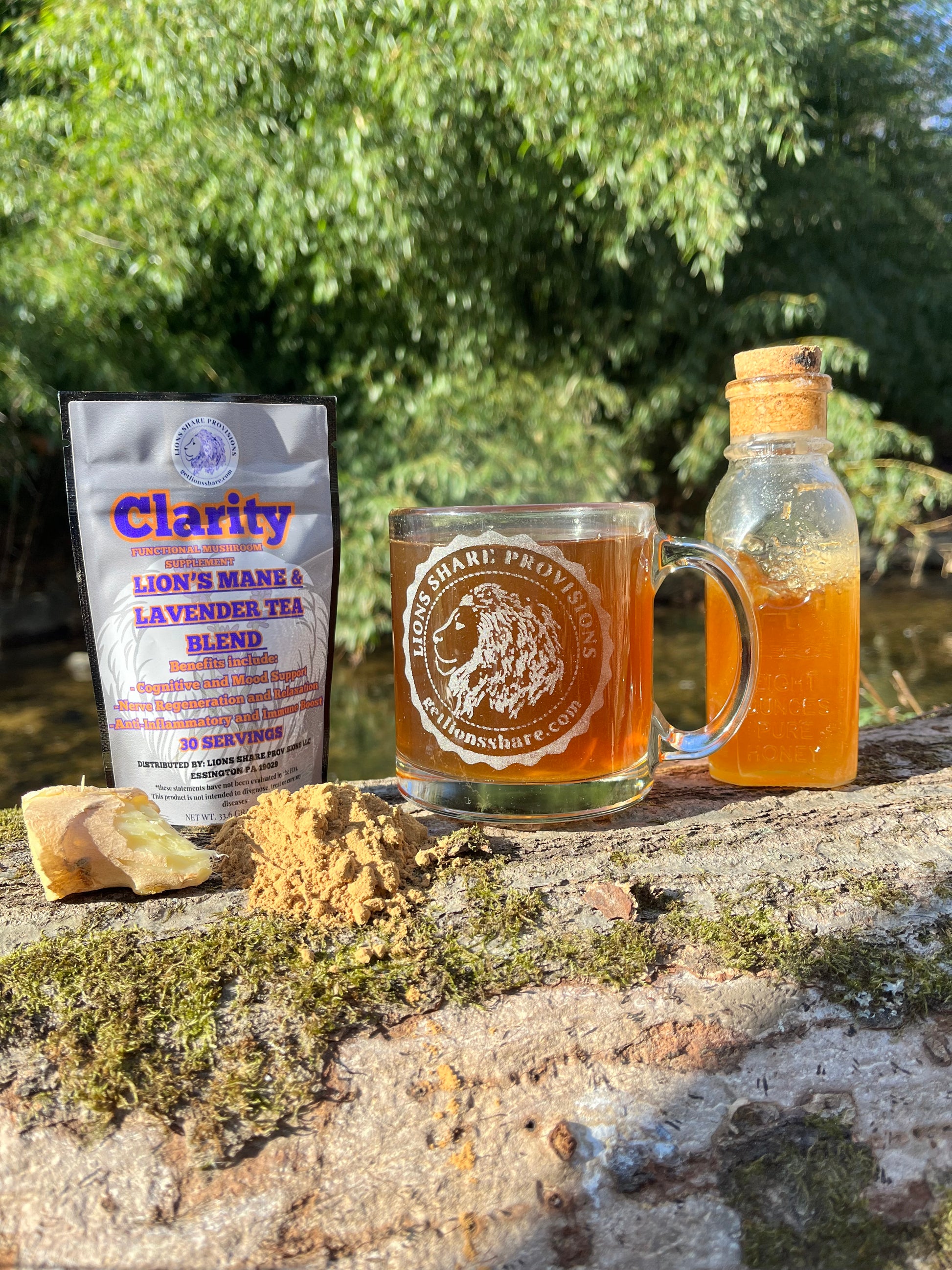 Our Lion’s Mane mushroom and Lavender blend is the perfect mix of focus and serenity! Whether in your morning coffee or tea, midday smoothie, or sprinkled on your favorite foods, ⅓ of a teaspoon of Clarity will give you the concentration you want and the relaxation you deserve!